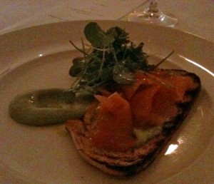 The Amuse Bouche of Prawn Bisque was divine, and frankly I would have been happy having a large bowl of this for dinner! The smoked salmon I was told by the helpful waitress was Huon Smoked Salmon and was as beautiful tasting as it was presented. I can never go past pork belly, and Berardo’s did not disappoint. Braised in an Asian spice infused stock and served with an Asian salad, it was tender and delicious. The dessert was the least favourite dish, as the advertised “Nougat Semifreddo” was replaced with Chocolate Semifreddo, which was nothing memorable but still a pleasant way to conclude the meal.
